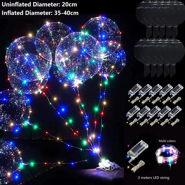 パーティーやイベントを華やかに演出するLEDライト付きの透明バルーン10個セットです。