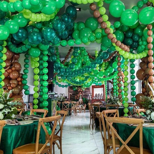 レトロなダークグリーンカラーのバルーンセットは、様々なイベントにぴったりのデコレーションアイテムです。