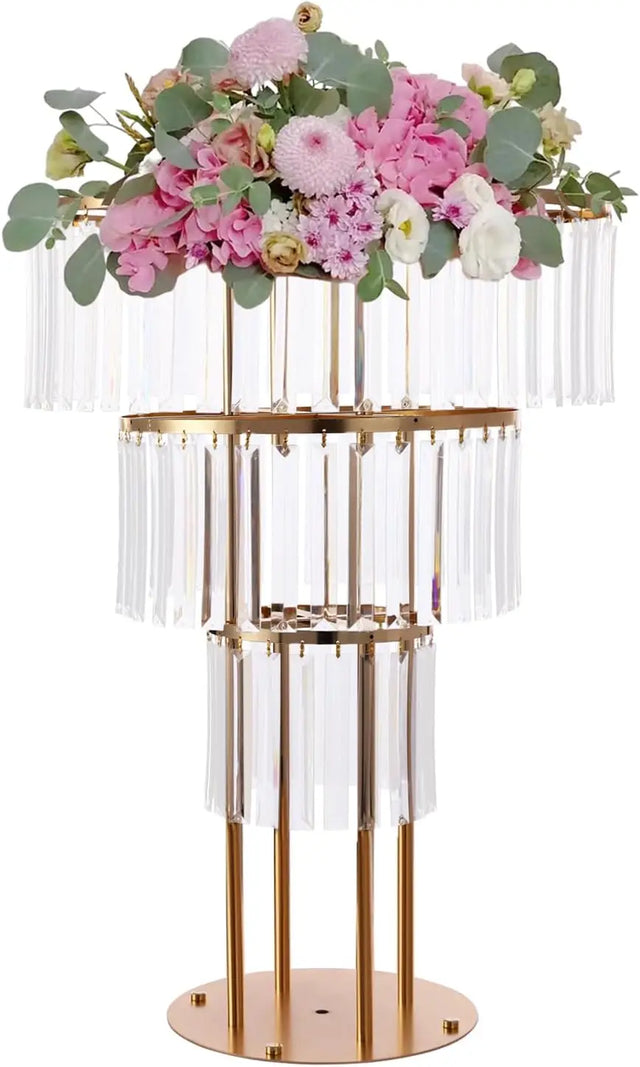 パーティー・インテリア装飾|3段ゴールドクリスタルフラワースタンド