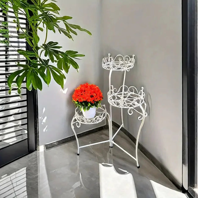 ガーデン・インテリア装飾|3段式アイアンプラントスタンド( 高さ69.5cm)