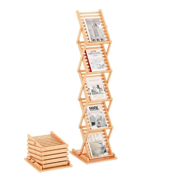 竹製 5段カタログスタンド 折りたたみ式・組立不要 A4/A3 パンフレットラック