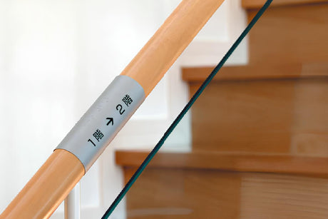 階段用の手すりに巻いて貼り、行先を示す点字標示板です。 点字表示JIS規格対応品でポリカーボネ...