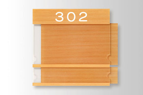 さわやかで明るいメープル材の室名札です。ブラケットにアルミ型材スイングを採用。丸みある金具でや...