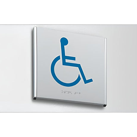 表示板もフレームもアルミ製の一般的なデザインの点字付きピクトサインプレートです。 触読に不慣れ...